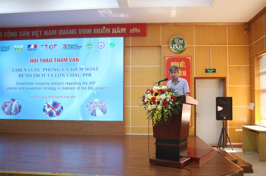Sáng ngày 18/5/2023 Viện Chăn nuôi và Tổ chức CIRAD đã phối hợp tổ chức Hội thảo tham vấn “Chiến lược phòng và kiểm soát bệnh dịch tả lợn Châu Phi” tại Hội trường lớn của Viện Chăn nuôi, số 9 Tân Phong, P. Thụy Phương, Q.Bắc Từ Liêm, Hà Nội.