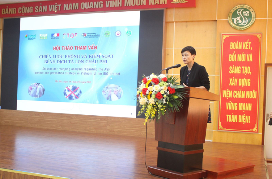 Trong thời gian diễn ra Hội thảo, TS. Flavie Goutard – CIRAD đã giới thiệu tổng quan các hoạt động của Dự án BIG tại Việt Nam; ThS. Lê Thị Thu Hà - Trợ lý nghiên cứu Dự án đã trình bày kết quả sơ bộ phân tích sơ đồ các bên liên quan trong chiếc lược phòng và kiểm soát bệnh dịch DTLCP và đã được các đại biểu thảo luận, đóng góp nhiều ý kiến thực tế với mong muốn sau Hội thảo, Dự án sẽ xây dựng được chiến lược phù hợp, tập huấn, đánh giá phương pháp tiếp cận và những ảnh hưởng của Dự án, qua đó Dự án xác định chiến lược để kiểm soát bệnh Dịch tả lợn Châu Phi hiệu quả ở Việt Nam.