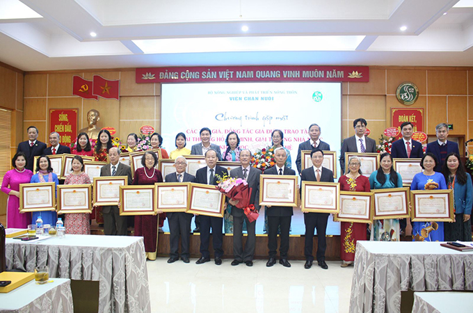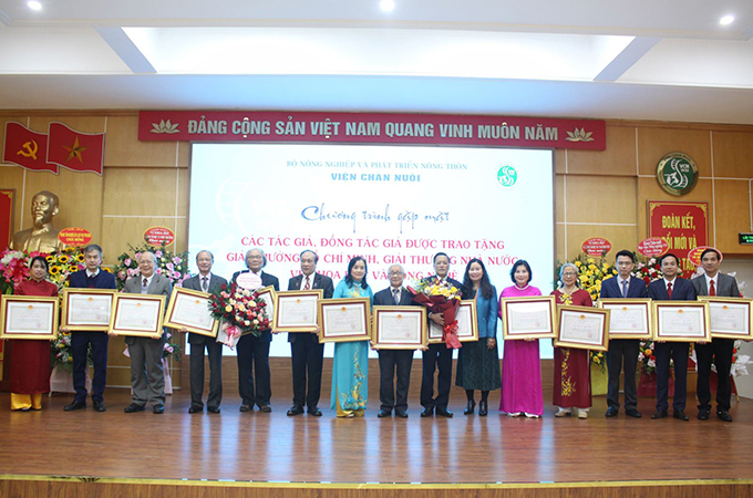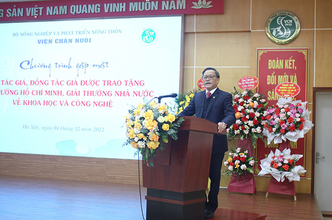 Thừa Ủy quyền của Vụ thi đua khen thưởng của Bộ Khoa học Công nghệ, Viện Chăn nuôi long trọng tổ chức buổi gặp mặt và trao giải đến từng cá nhân là các đồng tác giả của các Cụm công trình đoạt giải thưởng Hồ Chí Minh, giải thưởng Nhà nước về Khoa học Công nghệ” vào sáng ngày 4/12/2022, tại Hội trường lớn của Viện Chăn nuôi, số 9 Tân Phong, phường Thụy Phương, Quận Bắc Từ Liêm, Hà Nội.